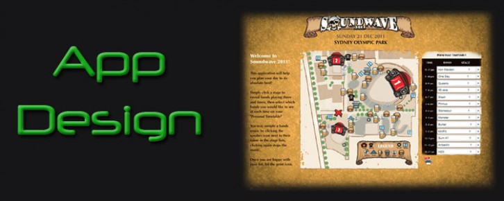 A mobile app i designed to be used as a map/guide for Soundwave 2011, including customisable timetables and previews of bands.